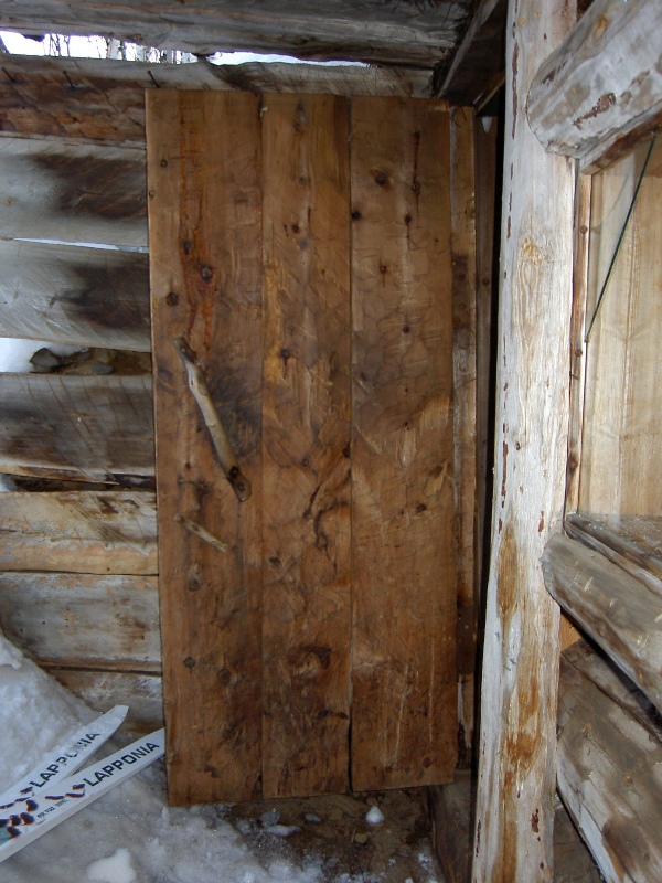 Saunan ovi on kirveellä veistetty