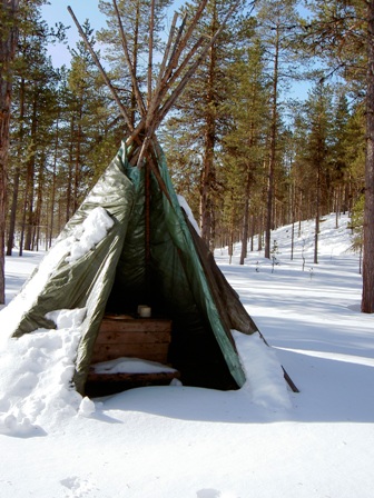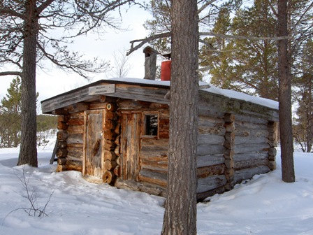 Vaskolompolon kämppä sisältä ja ulkoa, lähdössä suojahiihtoon..