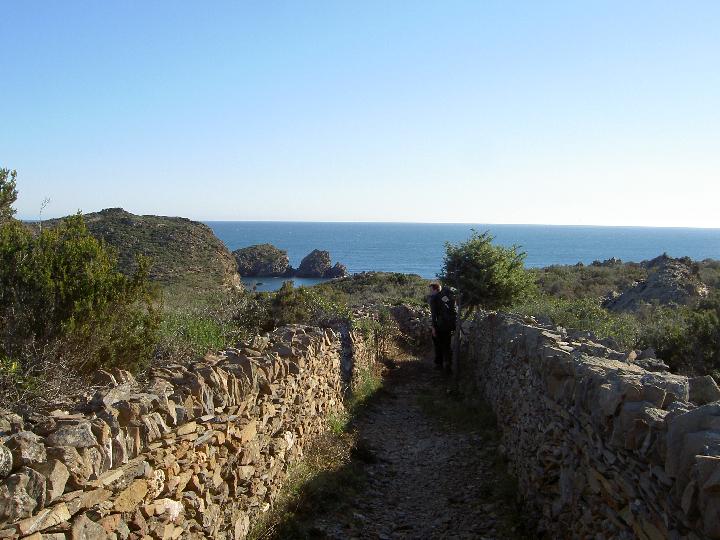 Välillä vähän leveämpää, aidalla varustettua polkua